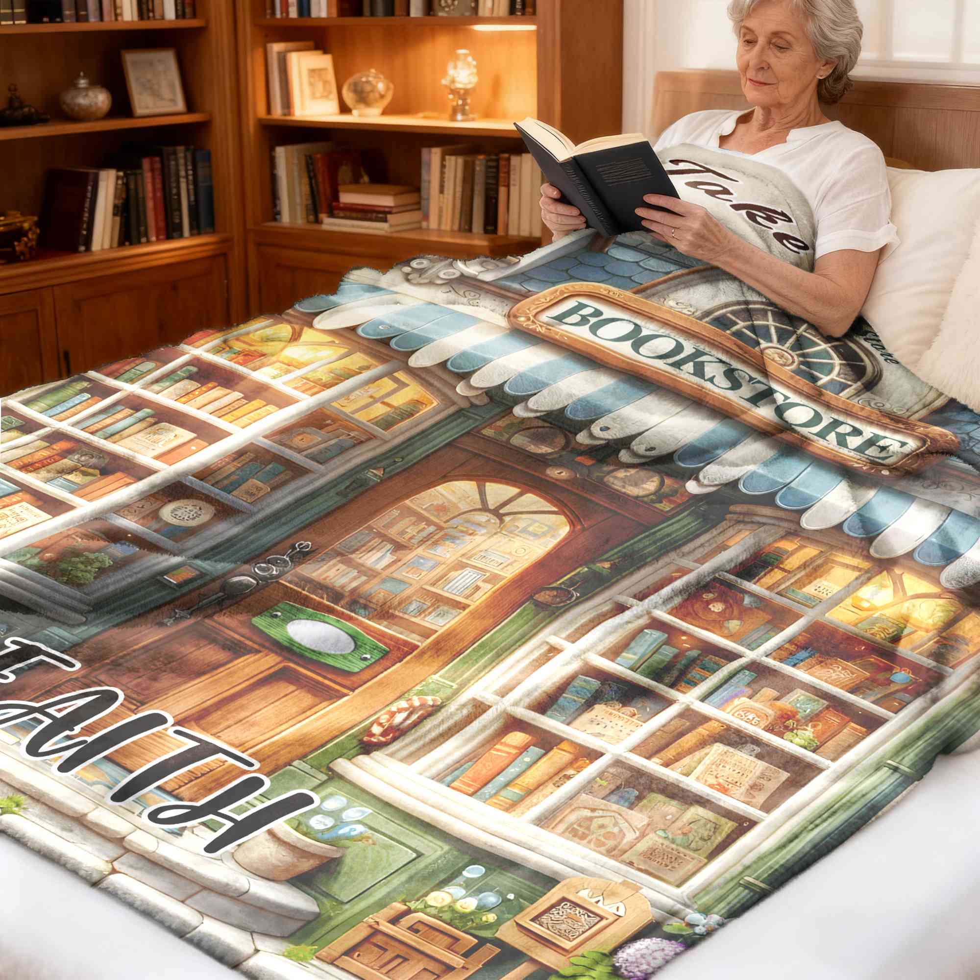 Bookstore-Inspired Design - This blanket carries the charm of a classic bookstore scene, filled with warm tones and inviting details that remind readers of quiet moments spent among favorite stories. The layout feels comforting and thoughtful, turning your sofa or bed into a personal reading nook.