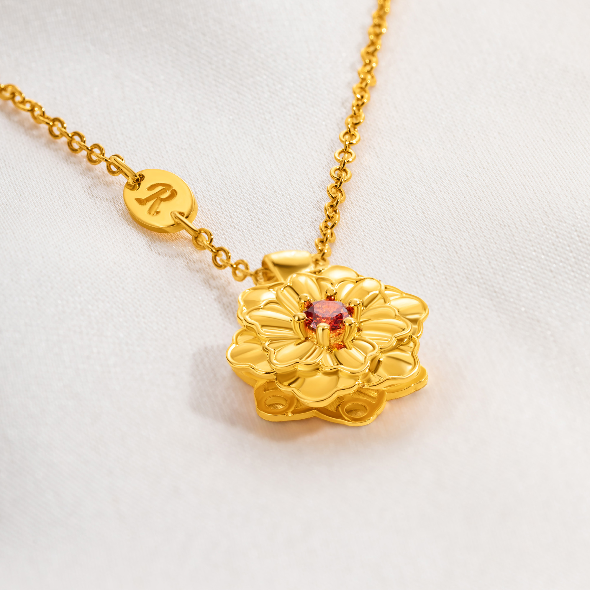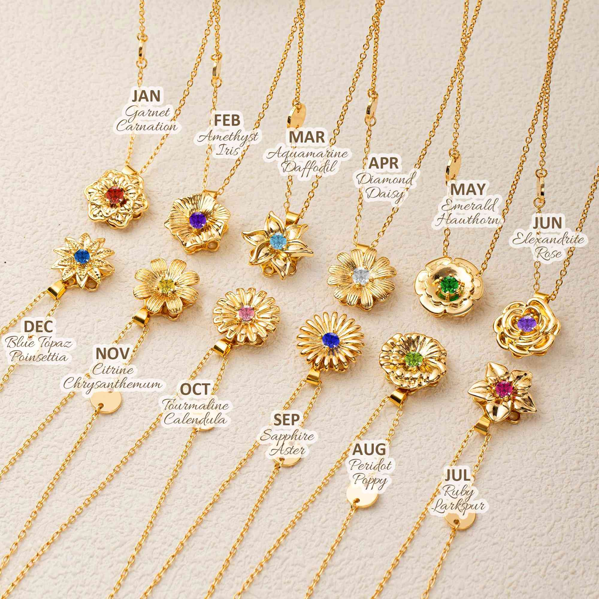 Charming Birth Flower Design - This necklace blends a dainty fidget-spinner pendant with a detailed birth flower, bringing together calm movement and meaningful symbolism. Its slim, feminine shape sits lightly on the neckline and adds a sweet touch to any look.